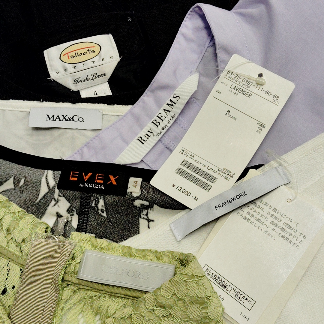 レディースブランド古着セレクト40枚(税・送料込み) こちらはBランクの箱です。 古着屋12年のバイヤーが、1枚ずつ利益を計算してピックした厳選アソートです。 日々のメルカリやヤフオク販売にぜひご活用ください。 ・小規模運営のため、1日につきA,B,Cいずれか【 限定1~2箱 】のみの販売です。 ※完全早い者勝ちとなります。完売の際は次回の販売をLINE登録してお待ちください。 公式LINE https://utage-system.com/line/open/99RVfm4TrQbl この箱のポテンシャル ・1枚あたり:約1125 円 ・想定販売価格:1枚4,000円〜20,000円 ほど ・数枚で元が取れる商品を厳選して詰め込みました ・すべて6,000円で売れた場合24万円 の売上が見込めます。 ブランドリスト キャラオクルス(レリアン) 自由区 セルフォード MAX&CO ローラアシュレイ スペッチオ コーザノストラ ヒロココシノ バーバリーロンドン(ブルーレーベル) ポールスチュアート イエナ など アイテムリスト トップス・ジャケット11 ワンピース・チュニック13 アウター4 ボトムス12 合計40 決済後、3日から1週間以内に発送いたします。 B-003 本商品は古着卸アソート商品です。 ご購入前に必ず以下の注意事項をご確認ください。 📍購入時の注意事項はこちら